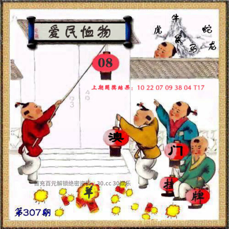 307期挂牌《爱民恤物》 解释:该成语更侧重对百姓生存状态的深切关怀 解料:对百姓生存状态的深切关怀解狗猴兔羊虎鼠,挂:08爆:羊 七肖:羊狗猴兔虎鼠鸡 |